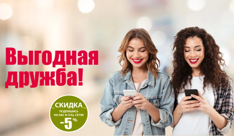 Покажи кассиру подписку на одну из соц.сетей и получи доп.скидку.
