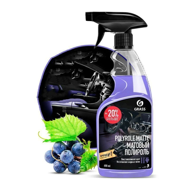 Профессиональный матовый полироль для обработки приборных панелей, очистки и полировки изделий из кожи, дерева, винила, пластика и резины. Сохраняет первоначальный цвет, не оставляет жирных пятен, препятствует оседанию пыли, придает матовый блеск. Средство обладает приятным ароматом.