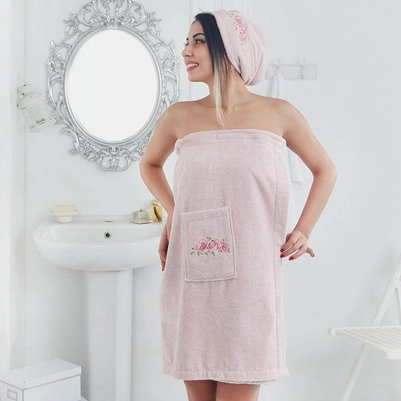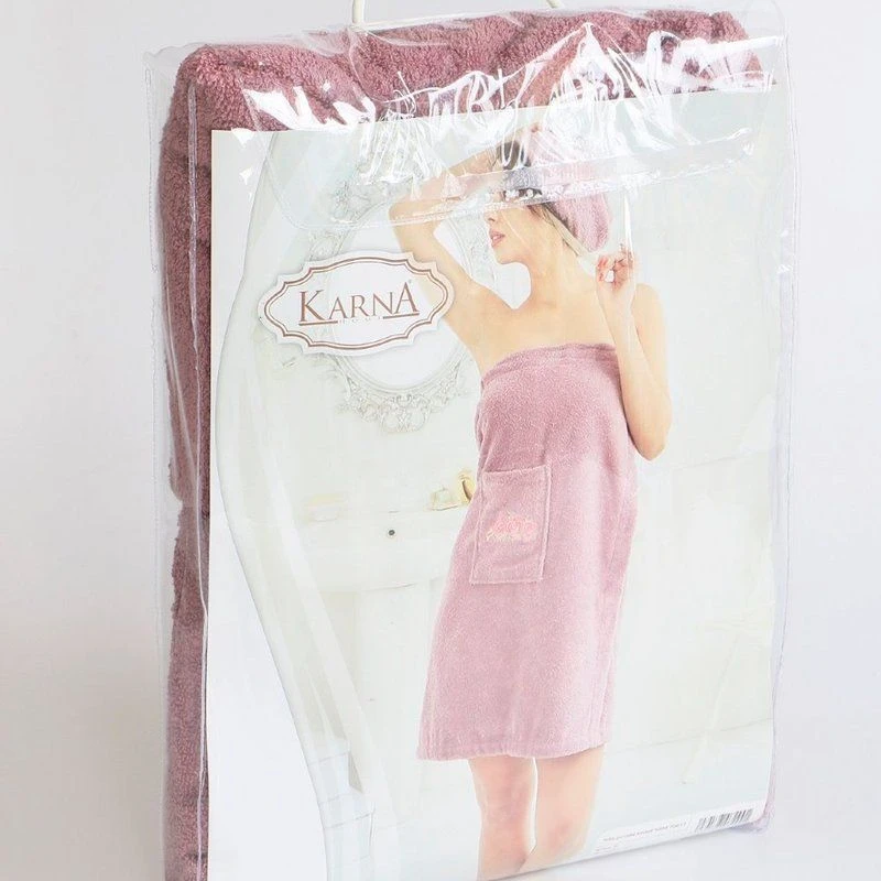 Набор для сауны женский PERA изготавливают из высококачественных хлопковых нитей. Хлопковые нити прядутся из длинных волокон. Длина волокон хлопковой нити влияет на свойства ткани, чем длиннее волокна, тем махровое изделие прочнее, пушистее и мягче на ощупь. А также махровое изделие будет отлично впитывать воду и быстро сохнуть. На впитывающие качества махры (ее гигроскопичность) конечно же влияет состав волокон. Махра абсолютно не аллергена, имеет высокую воздухопроницаемость и долгий срок использования ткани.