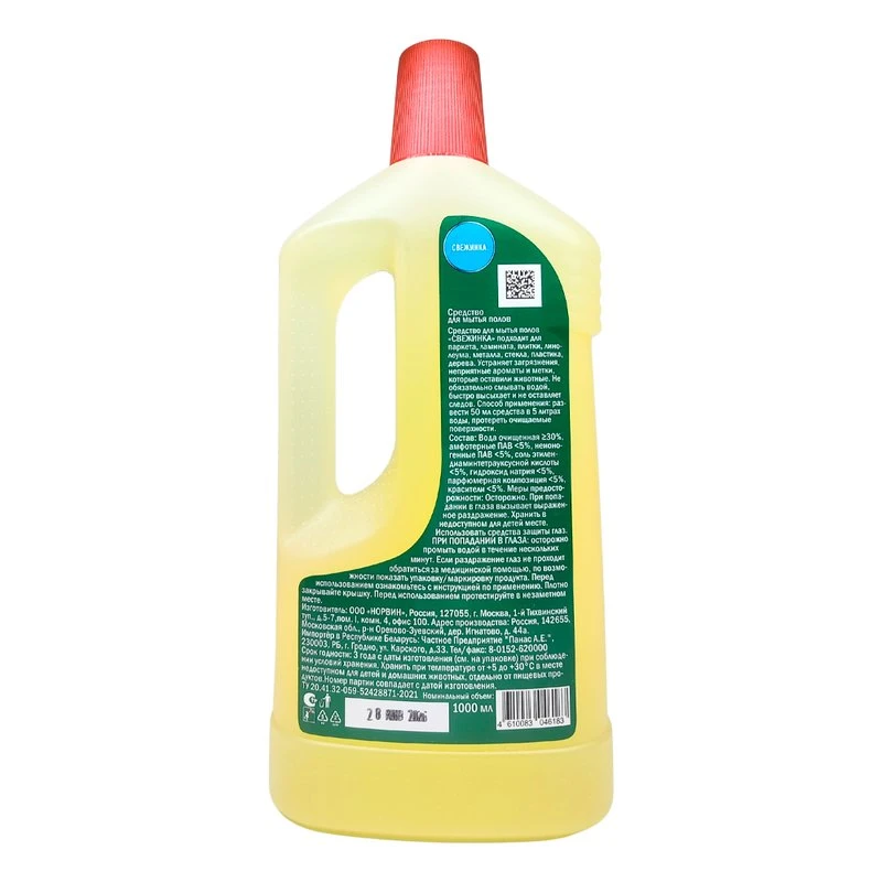 Эффективное очищение и свежесть в каждом движении. Легко удаляет пыль, грязь и следы, не оставляя разводов. Оставляет легкий цитрусовый аромат, наполняя помещение ощущением чистоты. Подходит для Всех тигов моющихся напольных покрытий: плитки, линолеума, ламината и других.