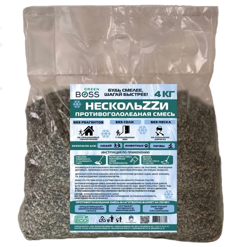 Разрешено использовать в качестве антискользящего состава на тротуарах, пешеходных дорожках, парковках, и автостоянках, дворовых проездах, лестницах, пандусах. Допускается использование смеси на территории детских садов, школ, больниц, т.к. не содержит солей и реагентов.