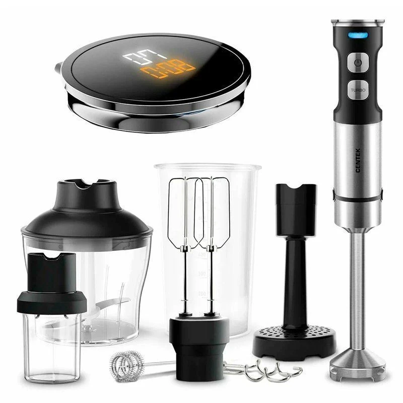 Многофункциональный погружной блендер – мощный и эффективный набор 8 в одном, для быстрого и качественного результата. Оснащен информационным дисплеем, который позволяет контролировать скорость и время работы. Широкая комплектация и быстрая смена насадок позволяют перерабатывать продукты практически мгновенно. Выполнен из качественных материалов комплектация дополнена насадками: кофемолка, капучинатор, насадкой для пюре. Насадка миксер оснащена редуктором и позволяет взбить плотную меренгу или замесить легкое тесто. Легкое плавное управление и эргономичный дизайн, для максимально уверенного и комфортного использования.