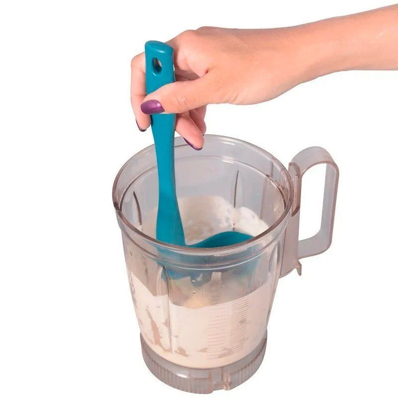 С помощью такого скребка, вы сможете без остатков извлечь все содержимое из чаши блендера или другой узкой и высокой посуды. Погрузите скребок в чашу и несколько раз прокрутите его по часовой стрелке. Для удобства в хранении в ручке предусмотрено отверстие.