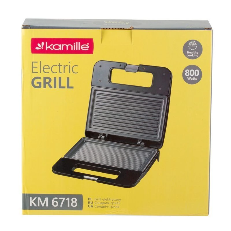 Бутербродница Kamille KM 6718 это компактное и простое в использовании устройство, она оснащена двумя прямоугольными ребристыми плитами с антипригарной поверхностью, и подходит для приготовления не только бутербродов и сэндвичей, но также отлично подойдет для гренок, тостов, сосисок-гриль, для того чтобы поджарить овощи, котлеты или хлеб до хрустящей корочки.