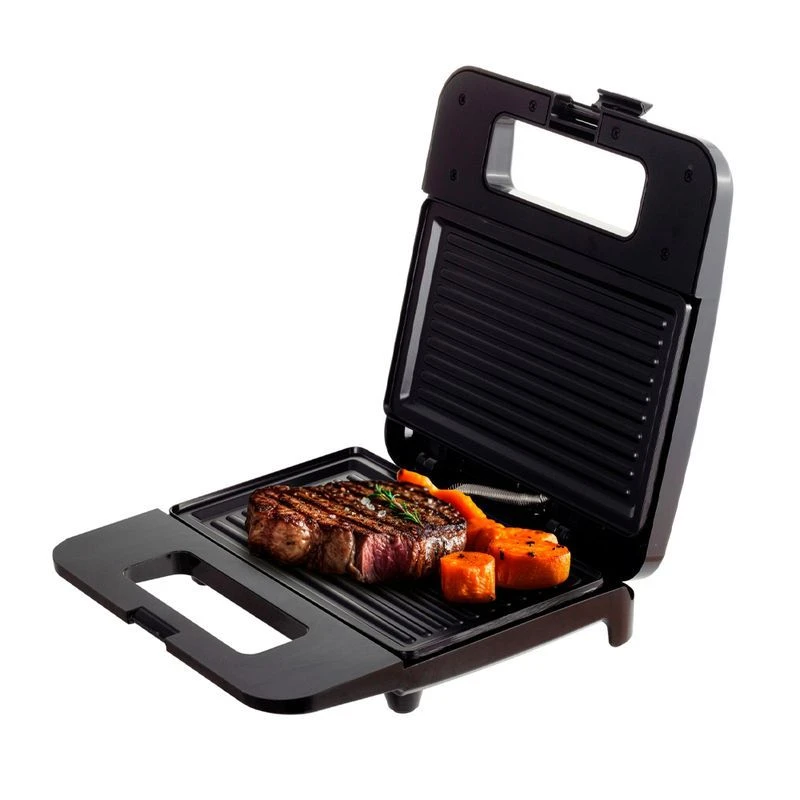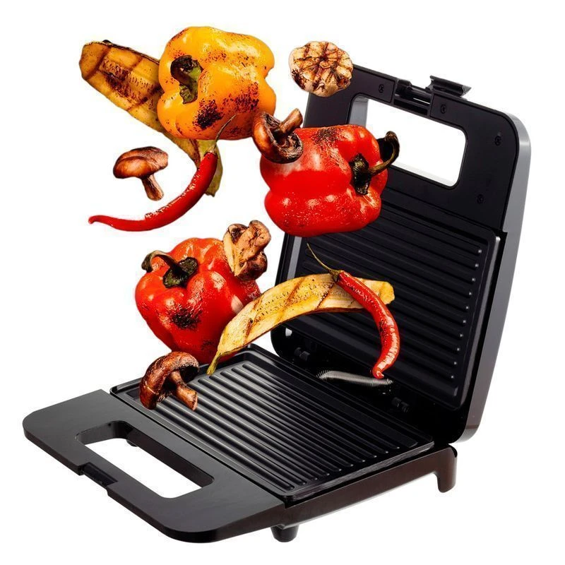 Поверхность электрогриля покрыта специальным антипригарным слоем, который предотвращает прилипание пищи и облегчает ее удаление после приготовления. Это делает очистку прибора проще и быстрее.