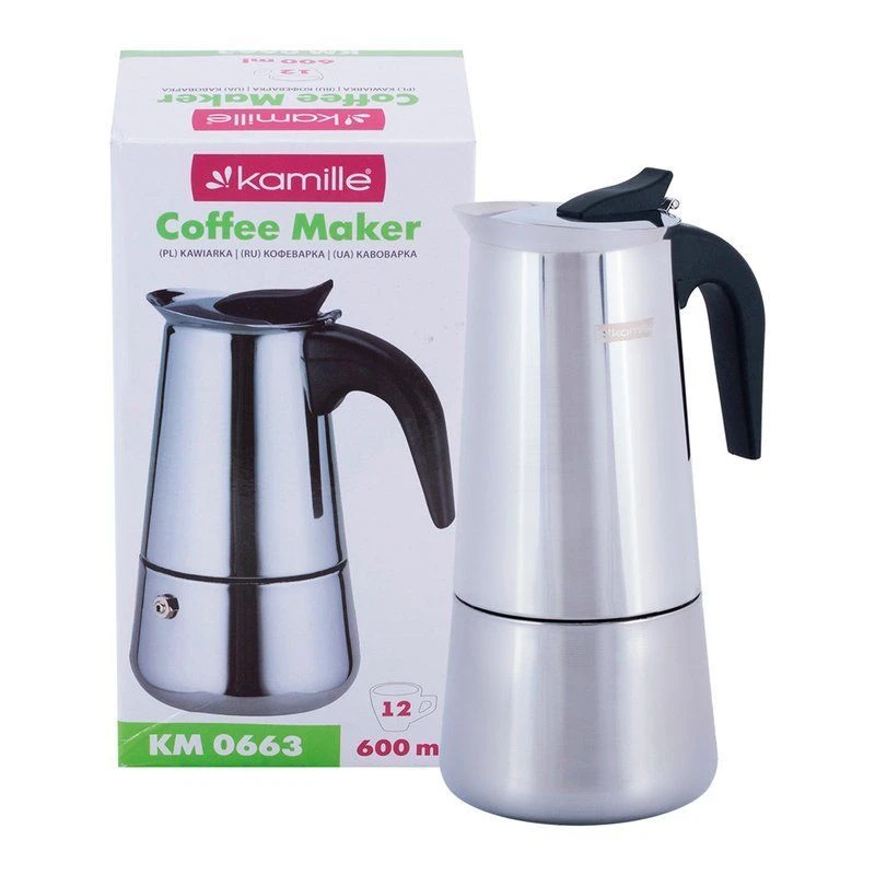 Гейзерная кофеварка Kamille создана для приготовления великолепного кофе по современным итальянским технологиям. Используя ее на любых кухонных плитах (за исключением индукционных), за считанные минуты Вы сможете насладиться чашкой ароматного, хорошо проваренного кофе.Диаметр дна: 11,5 см