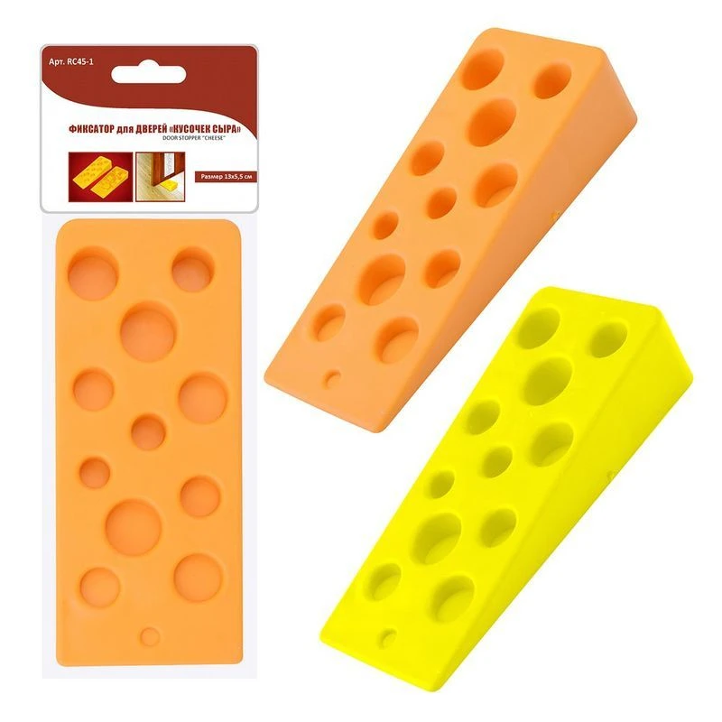 Используйте специальные фиксаторы для удобства обращения с межкомнатными и входными дверями. Приспособление позволяет фиксировать дверь в нужном положении, чтобы проветрить помещение или добавить свет в комнату. При этом дверь не захлопнется даже при порыве ветра. Кроме того, изделие поможет предотвратит появление царапин на полу и повреждений на стенах от дверных ручек. Фиксатор для дверей «Кусочек сыра» выполнен в ярком и необычном дизайне, что не оставит его незамеченным.