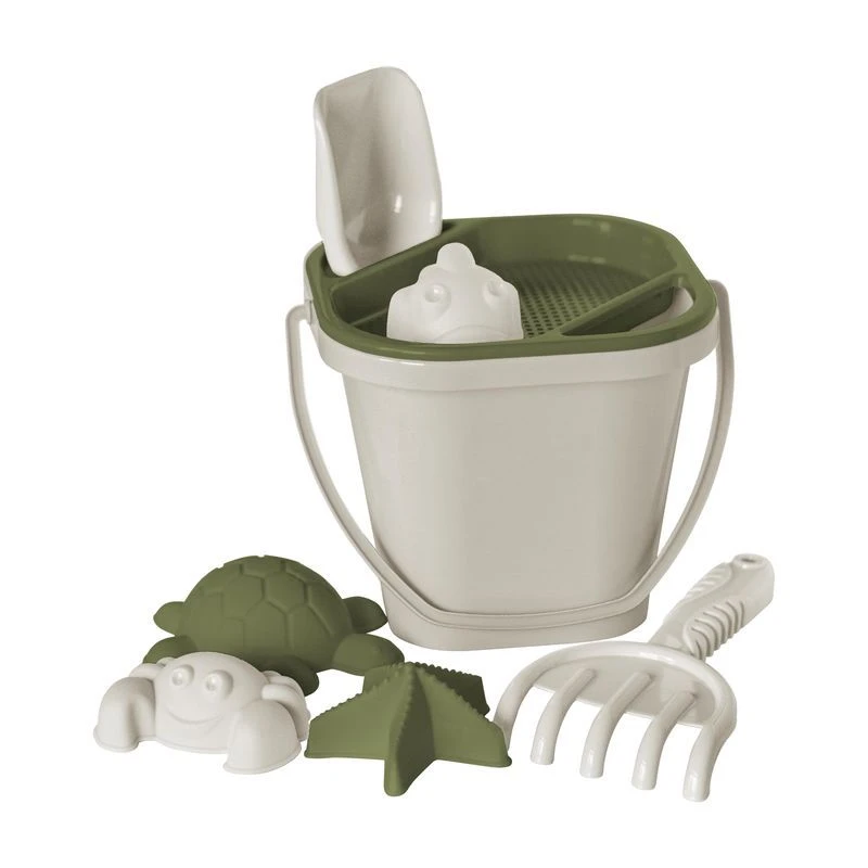 В песочном наборе найдется все необходимое, чтобы сделать игры с песком еще более увлекательными и радостными: ведерко, ситечко, грабельки, совочек и набор из 4х формочек. Мягкие формочки безопасны даже для крох, которые только начинают свое познание окружающего мира, и все пробуют «на зуб». Прочный экологичный материал и гладкие кромки изделий делают игру безопаснее.