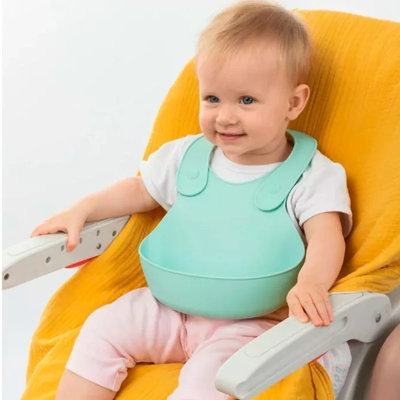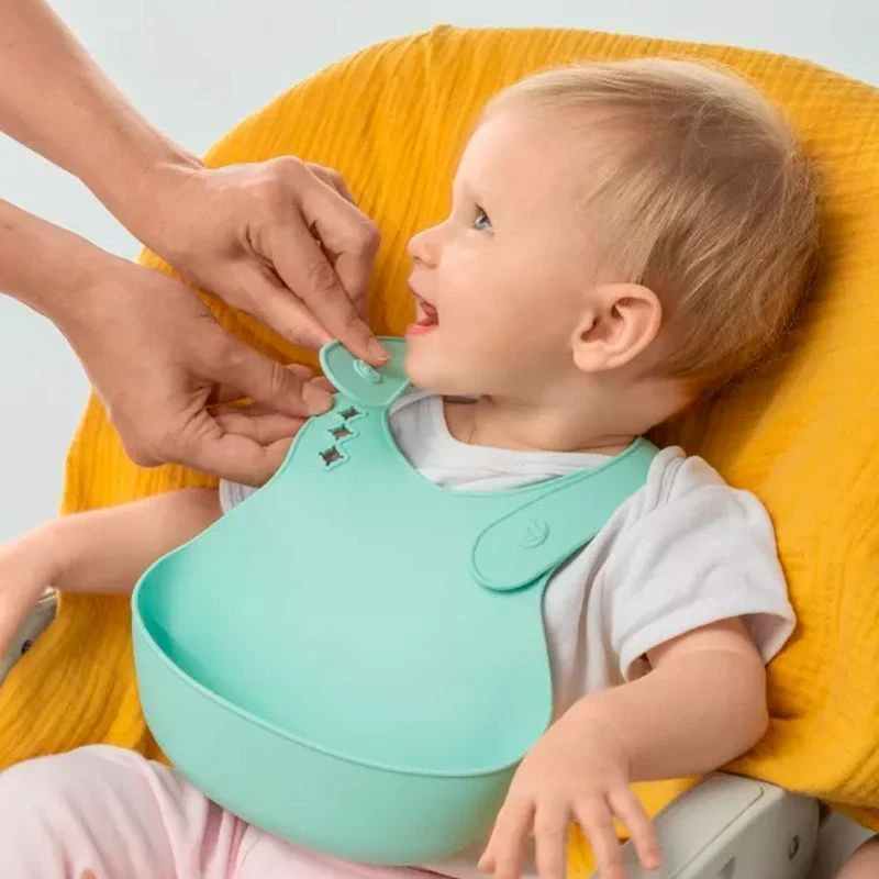 Прочный и приятный на ощупь нагрудник от Kidfinity обладает высокой эластичностью, эргономичная форма не сковывает движения ребёнка и не мешает принятию пищи. Расположенная спереди застежка позволяет регулировать ширину горловины под различный возраст и анатомические особенности малыша. Вместительный мягкий карман для улавливания остатков пищи хорошо держит форму. Компактный и легкий нагрудник можно аккуратно свернуть, надежно закрепить на специальную пуговицу и взять с собой в путешествие, в гости или на прогулку. Не занимает много места и не теряет форму. Изготовлен из водо- и влагостойкого безопасного пищевого пластика, устойчивого к жирам и маслам, не содержит БФА и фталаты. Произведен с заботой об окружающей среде: материал подлежит вторичной переработке. Прост в уходе, можно мыть в посудомоечной машине.