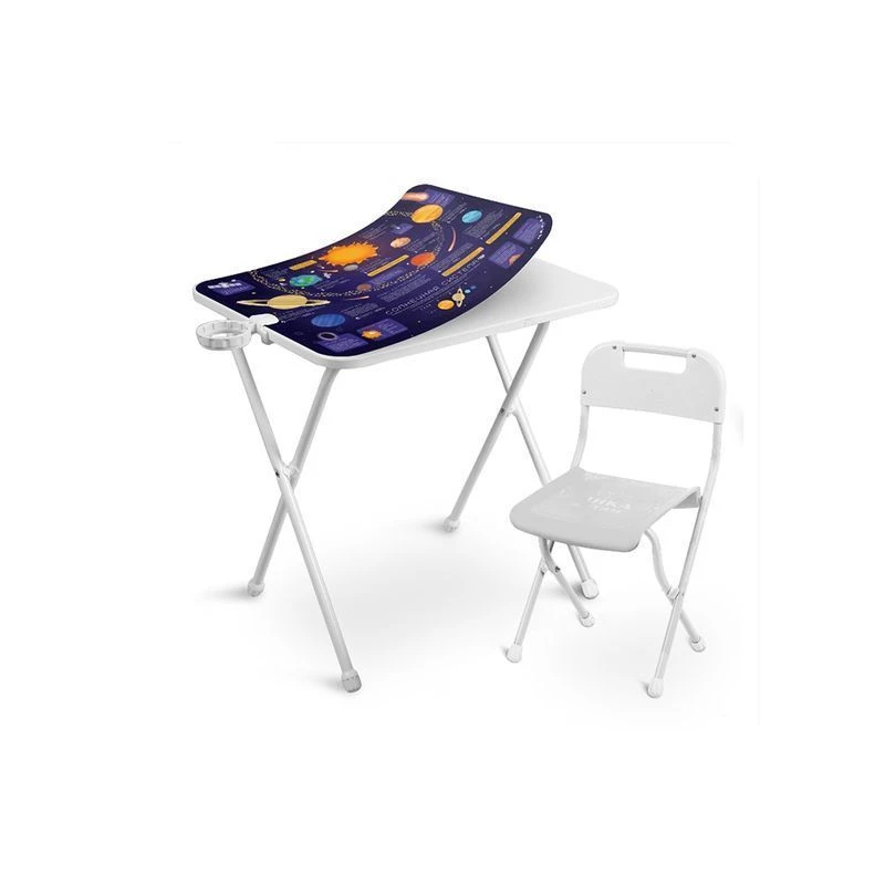 Комплект складной мебели в минималистичном дизайне со съемной накладкой на столешницу. Для детей в возрасте от 3 до 7 лет.