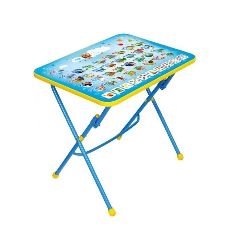 Поверхность стола с красочным глянцевым тематическим рисунком, рисунок столешницы столешницы - в ассортименте, цвет каркаса-синий, голубой, розовый.