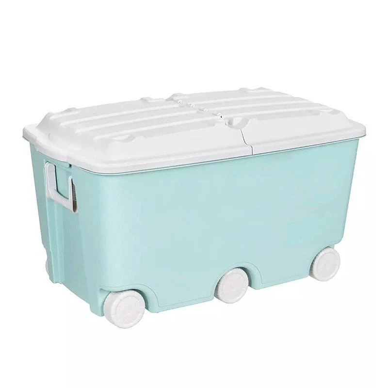 Большой ящик для игрушек на шести колёсах Пластишка вместит даже очень крупные игрушки и удачно впишется в интерьер детской комнаты. За надёжные складывающиеся ручки ящик удобно передвигать. Створки крышки откидываются на 180 градусов. Несколько ящиков можно поставить один на другой благодаря выемкам под колёса на крышке, а сами колёса покрыты эластичным материалом, который уменьшает скольжение и шум. Яркий декор нанесён с помощью IML-технологии: он не сотрётся с течением времени. Благодаря простой конструкции ящик легко моется. Выполнен из высококачественного надёжного пластика. Внимание! Ящик не предназначен для сидения или катания детей и для транспортировки тяжестей!