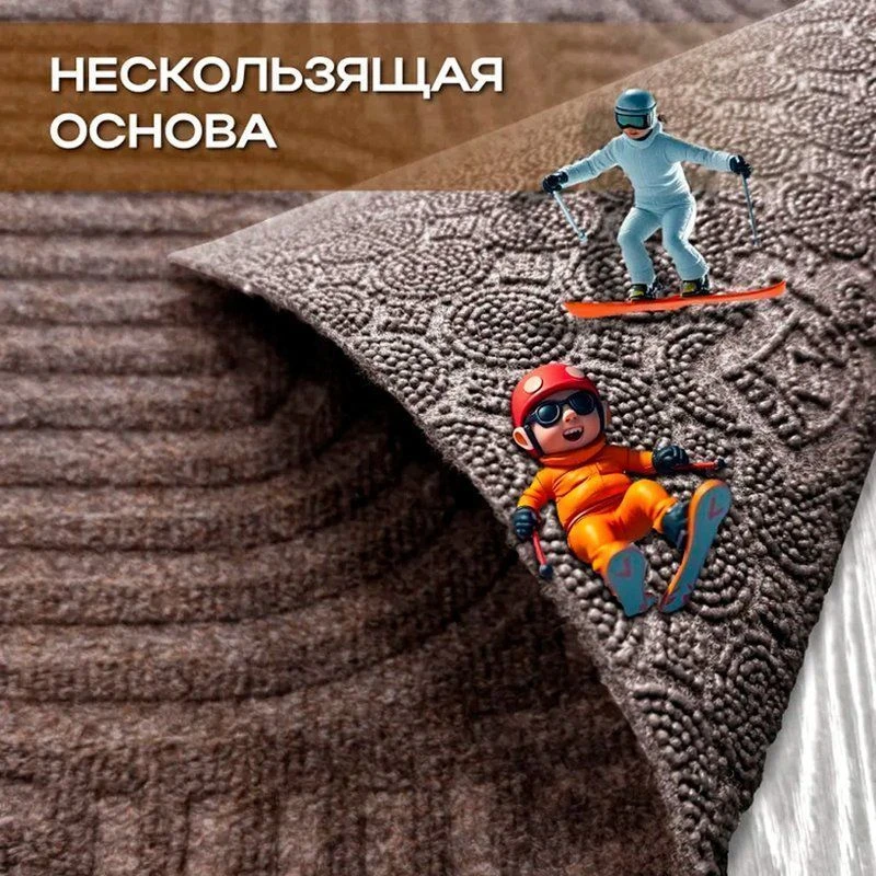 Вырезной рельефный предверный коврик "Лабиринт" — идеальное решение для вашего входного пространства! Половик не только эффективно очищает обувь от грязи, но и придает вашему коридору эстетическую привлекательность. Геометрические абстракции в дизайне создают эффект трехмерности, а плавные линии формируют динамичные узоры, визуально расширяющие пространство и добавляющие современный акцент. 3D-рисунок придаёт коврику глубину и объем, превращая его в настоящее произведение искусства. Ворс изготовлен из высококачественного синтетического волокна, что обеспечивает долговечность и износостойкость. Оптимальная высота ворса 5 мм позволяет эффективно задерживать грязь и влагу, не создавая препятствий при открывании двери. Мягкий и плотный ворс с рельефом обладает отличными абсорбирующими и грязезащитными свойствами, что помогает поддерживать чистоту в вашем доме. Антискользящая основа дорожки, выполненная из точечно нанесённый ПВХ, обеспечивает надежное сцепление с полом, предотвращая скольжение и обеспечивая безопасность.