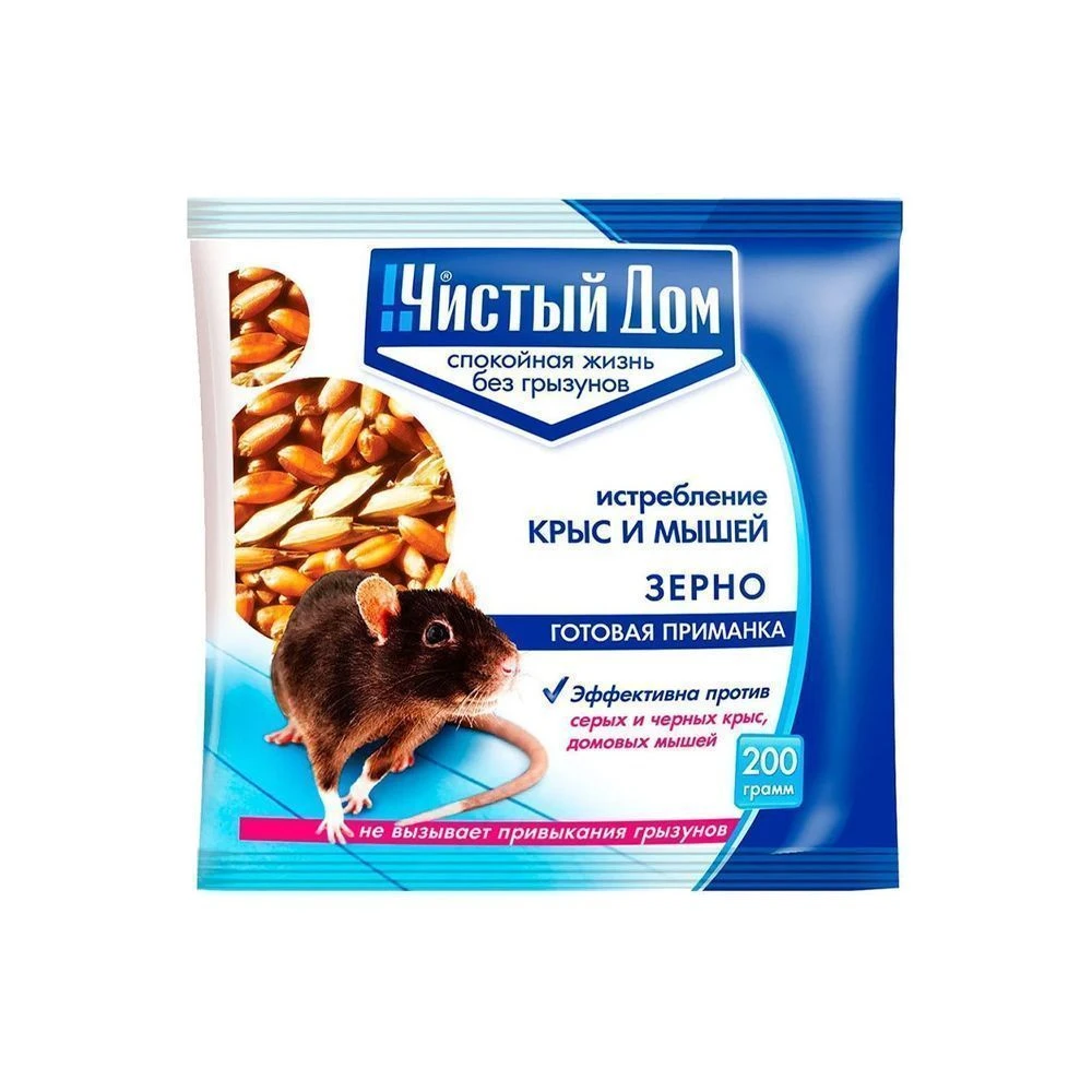 Приманка для грызунов зерновая «Чистый дом» предназначена для уничтожения домовых мышей и крыс. Представляет собой зерновую приманку с токсичным для вредителей веществом, привлекательную для грызунов и обеспечивающую полное их истребление. Средство упаковано в пакет весом 200 г. Действующее вещество — бромадиолон 0,005%. Инструкция по применению нанесена на обратную сторону пакета. Страна производства — Россия.