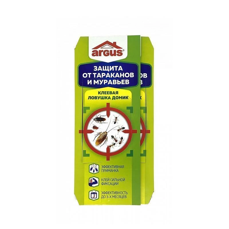 Высокоэффективное, НЕТОКСИЧНОЕ средство для уничтожения тараканов. Абсолютно безвредно для человека и домашних животных, не оказывает раздражающего воздействия на кожу. Клеевые ловушки Argus просты в применении и могут быть установлены в любом месте, в том числе в местах хранения пищевых продуктов. Вскрытые ловушки сохраняют активность в течении трех месяцев.