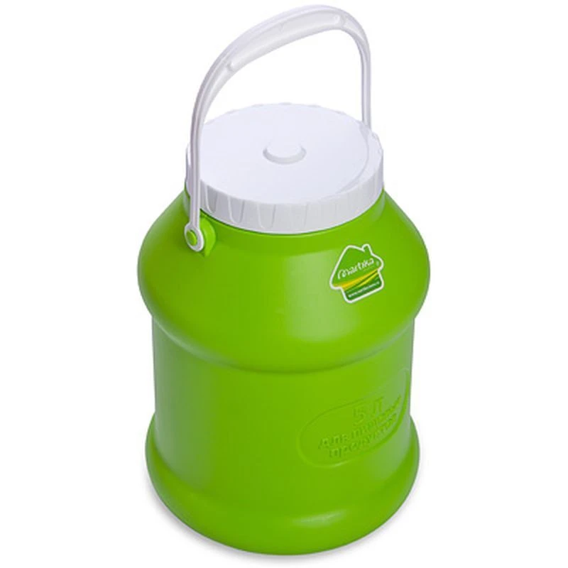 Пластик пищевой.Бидон предназначен для хранения и транспортировки пищевых продуктов: воды, молока, масла, меда, варенья, круп, сахара. Бидон имеет винтовую крышку, которая достаточно плотно прилегает к корпусу, но не гарантирует полную герметичность. Для удобства переноски имеется удобная встроенная ручка.