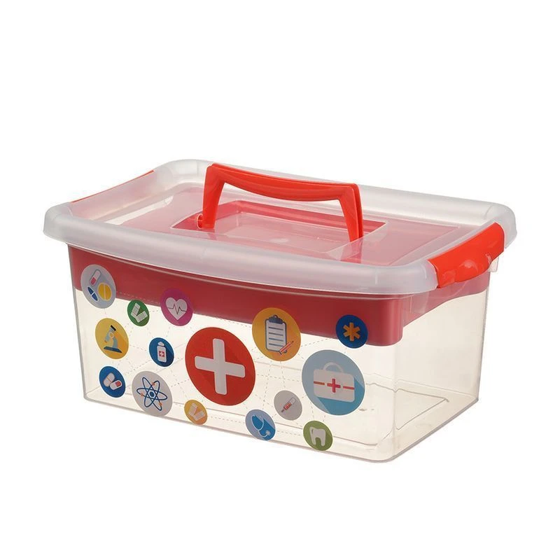 Ящик пластиковый прозрачный, имеет вкладыш с 4 секциями, что помогает сортировать лекарства.Размер: 19x13,1x29 см