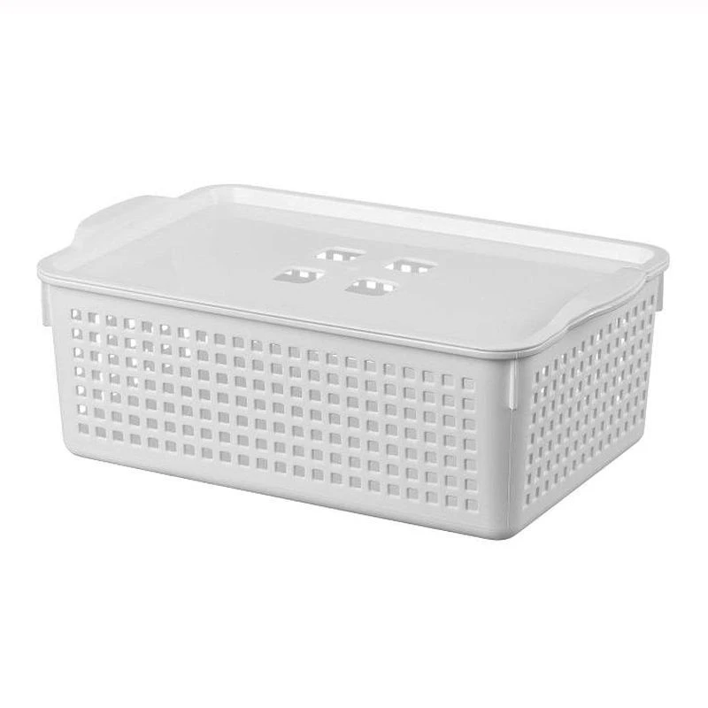 Емкость из пищевого пластика для хранения товаров домашнего обихода и продуктов питания. В объеме 3,8л корзинки оптимальны для хранения бакалеи, бытовых аксессуаров, белья и одежды и пр. Бортик по периметру крышек обеспечивает фиксацию при штабелировании корзинок друг на друга. С квадратными прорезями крышку корзинки удобно открывать-закрывать. Узор «клетка» на корпусе корзинок универсален для самых разнообразных стилей интерьера и делает изделия серии «Лофт» легкими и проветриваемыми.