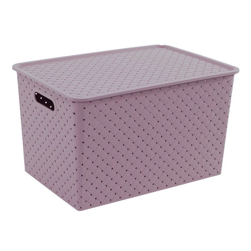 Емкость из пищевого пластика для хранения и переноски мелких аксессуаров и продуктов питания. В объеме 14л корзинки оптимальны для хранения одежды и обуви, овощей, книг и игрушек и пр. С врезными ручками обтекаемой формы корзинки удобно перемещать. Бортик по периметру крышек обеспечивает фиксацию при штабелировании корзинок друг на друга. Узор «Береста» по всему корпусу и крышке придает корзинкам натуральный вид и делает их легкими и проветриваемыми.
