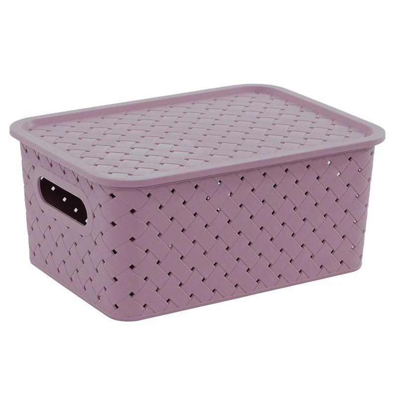Емкость из пищевого пластика для хранения и переноски мелких аксессуаров и продуктов питания. В объеме 3л корзинки оптимальны для хранения косметики и средств личной гигиены, продуктов питания, канцелярских товаров и пр. С врезными ручками обтекаемой формы корзинки удобно перемещать. Бортик по периметру крышек обеспечивает фиксацию при штабелировании корзинок друг на друга. Узор «Береста» по всему корпусу и крышке придает корзинкам натуральный вид и делает их легкими и проветриваемыми.