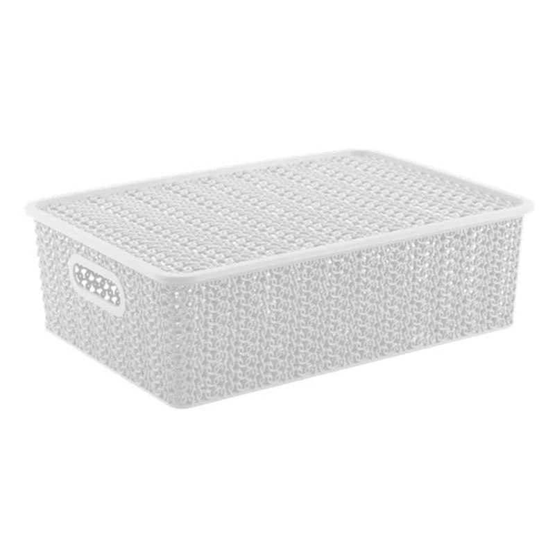 Емкость из пищевого пластика для хранения и переноски мелких аксессуаров и продуктов питания. В объеме 7,5л корзинки оптимальны для хранения товаров для рукоделия, свежих фруктов и ягод, бакалеи и консервов и пр. С врезными ручками обтекаемой формы корзинки удобно перемещать. Бортик по периметру крышек обеспечивает фиксацию при штабелировании корзинок друг на друга. Узор «Вязь» по всему корпусу и крышке придает корзинкам натуральный вид и делает их легкими и проветриваемыми.
