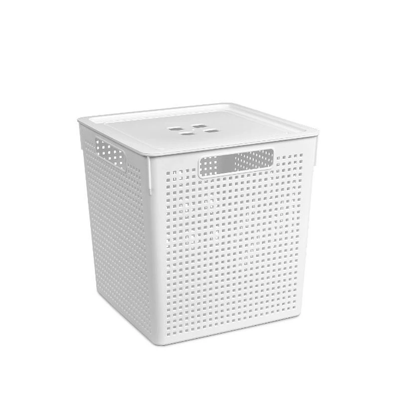 Емкость из пищевого пластика для хранения товаров домашнего обихода и продуктов питания. В объеме 23л коробки квадратные оптимальны для хранения бакалеи, бытовых аксессуаров, белья и одежды и пр. Изделие имеет ручки с четырех сторон, что удобно для использования и переноски. Бортик по периметру крышек обеспечивает фиксацию при штабелировании корзинок друг на друга. С квадратными прорезями крышку корзинки удобно открывать-закрывать. Узор «клетка» на корпусе корзинок универсален для самых разнообразных стилей интерьера и делает изделия серии «Лофт» легкими и проветриваемыми.