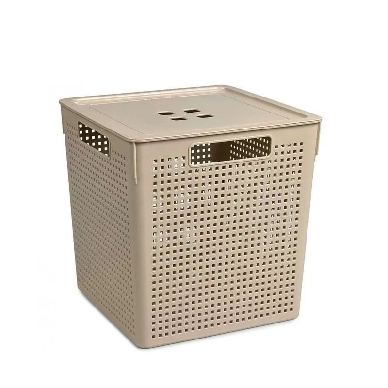 Емкость из пищевого пластика для хранения товаров домашнего обихода и продуктов питания. В объеме 23л коробки квадратные оптимальны для хранения бакалеи, бытовых аксессуаров, белья и одежды и пр. Изделие имеет ручки с четырех сторон, что удобно для использования и переноски. Бортик по периметру крышек обеспечивает фиксацию при штабелировании корзинок друг на друга. С квадратными прорезями крышку корзинки удобно открывать-закрывать. Узор «клетка» на корпусе корзинок универсален для самых разнообразных стилей интерьера и делает изделия серии «Лофт» легкими и проветриваемыми.