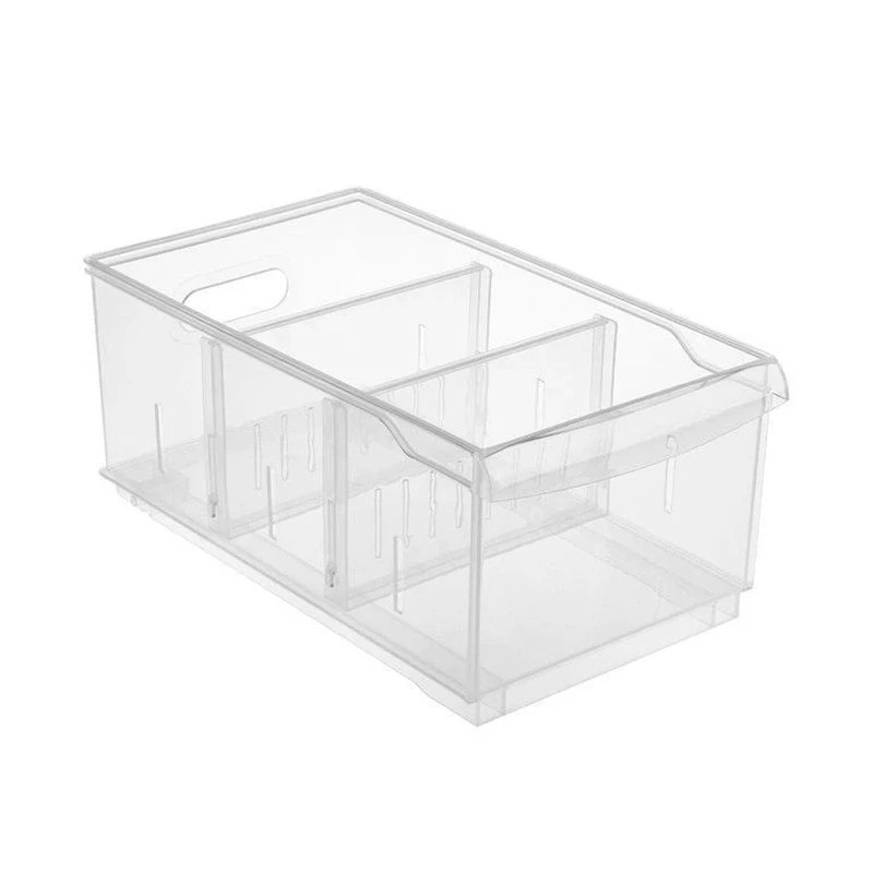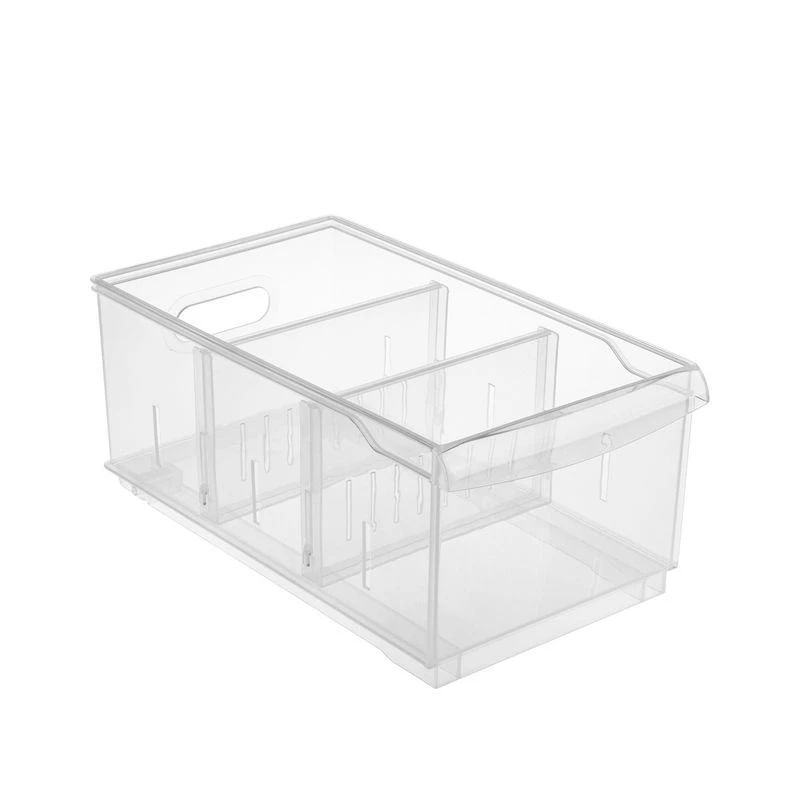 С помощью нескольких перегородок, которые идут в комплекте, и специальных пазов можно менять размер отделений контейнера по необходимости, приспособив как для мелочей, так и для крупных предметов. Прозрачные стенки позволяют видеть, что хранится внутри каждого из контейнеров.