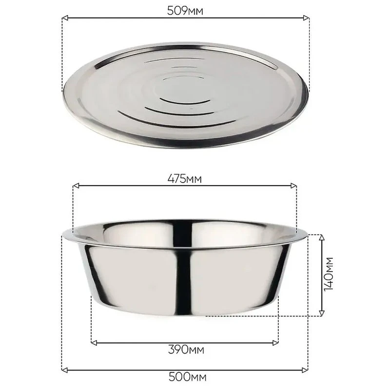 Таз с крышкой выполнен из высококачественной нержавеющей стали. Материал изделия не выделяет токсичных веществ, не подвержен коррозии, а так же позволяет работать как с холодными, так и с горячими жидкостями. Металлическая посуда славится своей прочностью и тонкостью, поэтому таз можно использовать даже в походных условиях для приготовления шашлыков, овощных блюд и рыбы. В нем можно не только готовить, но и хранить продукты благодаря плотно прилегающей крышке. Металлический тазик станет незаменимой вещью на даче, в саду, на огороде и в доме. Он подходит для различных хозяйственных и бытовых нужд - от мытья и стирки белья до купания детей и использования в бане. Широкие бортики изделия предотвращают разбрызгивание содержимого и обеспечивают дополнительное удобство при переносе горячих блюд. Легкий и устойчивый таз из нержавеющей стали легко моется, что делает его еще более удобным в использовании. Объем изделия 20 л, диаметр по верху 50 см, диаметр дна 39 см.