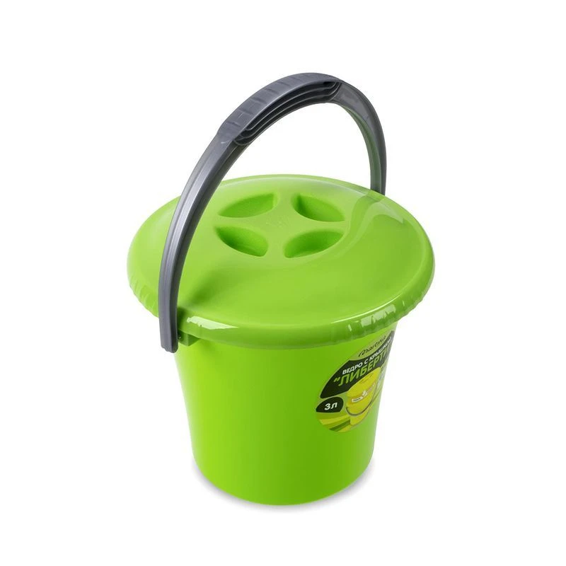 Пластик пищевой. Универсальная емкость для сбора, переноски, хранения воды и других жидкостей и продуктов. Ведро «Либерти» отличает удобная форма и привлекательный дизайн. Изделие оснащено крышкой, которая благодаря специальной конструкции надежно фиксируется на колбе ведра. Немаловажная деталь - эргономичная, удобная ручка для переноски. Специальное углубление на дне позволяет с легкостью удерживать ведро во время слива воды. На внутренней стороне ведра нанесена мерная шкала.