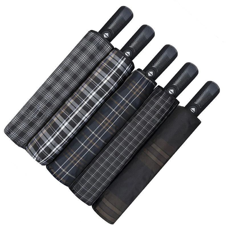 Мужской большой зонт оснащен системой Антиветер. Тип механизма – полный автомат, оснащен механизмом автоматического открывания. Зонт открывается и закрывается нажатием на кнопку на ручке зонта, фиксируется в механизме вручную. Каркас – 9 спиц с антикоррозийным покрытием. Среднее звено спиц – широкий фибергласс. Ткань купола – полиэстер.