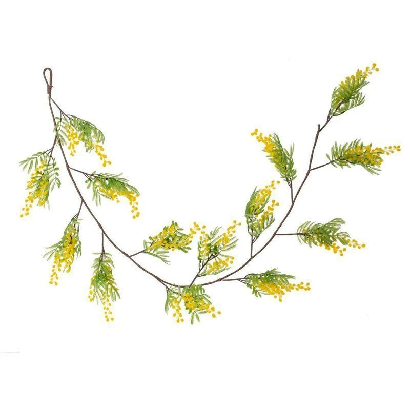 Пасхальная гирлянда Мимоза — это изысканное декоративное украшение, которое придаст вашему интерьеру весеннюю легкость и праздничное настроение. Выполненная из полимерных и текстильных материалов, она точно имитирует натуральные веточки мимозы с их пушистыми желтыми соцветиями и нежными зелеными листочками. Длина гирлянды составляет 141см, что позволяет использовать ее для декора различных поверхностей: каминов, дверных проемов, окон, полок или праздничного стола. Гибкий металлический каркас обеспечивает удобное крепление и возможность придавать изделию желаемую форму. Такая гирлянда станет отличным украшением для дома в период Пасхи, весенних праздников или тематических мероприятий, добавляя уют и природную эстетику.