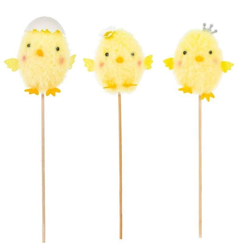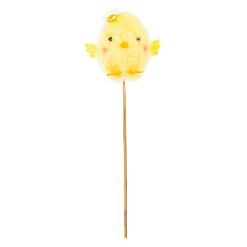 Декоративная вставка Цыплёнок — очаровательный пасхальный акцент для любых композиций и праздничного декора. Мягкий жёлтый пушистый цыплёнок с забавно надетой на голову половинкой скорлупки выполнен из сочетания полимерных, натуральных и текстильных материалов. Фигурка закреплена на тонкой деревянной палочке, благодаря чему её удобно вставлять в цветочные букеты, горшечные растения, пасхальные корзинки, подарочные наборы и рукодельные композиции. Лёгкое и безопасное изделие подойдёт для украшения дома, детской, кафе или витрин, создавая тёплую весеннюю атмосферу и подчёркивая пасхальное настроение. Представлено в трех вариантах.