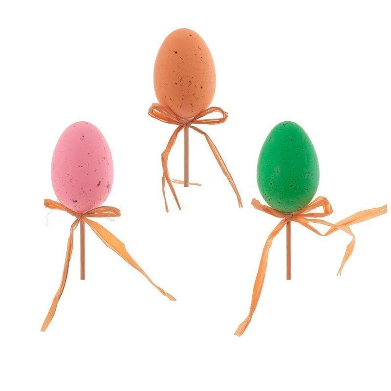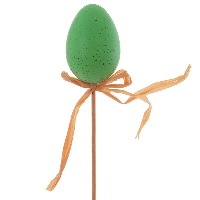 Декоративная вставка Яйцо пасхальное – изящный акцент для весеннего оформления интерьера, праздничного стола и подарочных композиций. Небольшое яйцо размером 3,5*5,5см выполнено из прочных полимерных материалов, имитирующих натуральную скорлупу с лёгкими крапинками. Яйцо закреплено на тонкой деревянной шпажке, благодаря чему его удобно вставлять в цветочные горшки, букеты, корзинки, пасхальные куличи или декоративные венки. Натуральный шнур, завязанный бантиком у основания, придаёт изделию уют и подчёркивает природный стиль. Лёгкая и безопасная вставка долговечна, не бьётся и подходит для многократного использования, позволяя каждый год создавать атмосферу светлого праздника Пасхи. Представлено в трех вариантах.