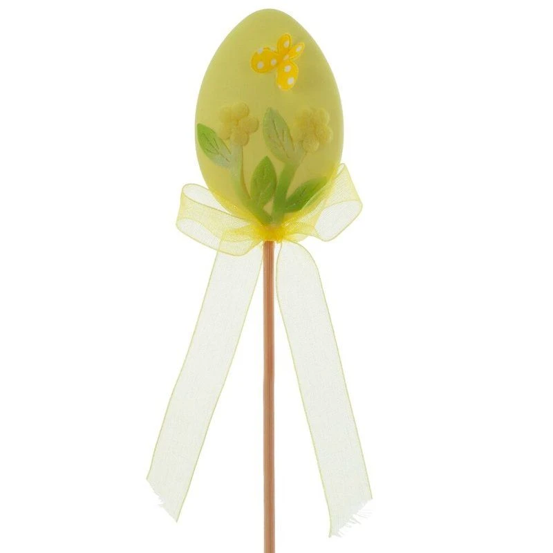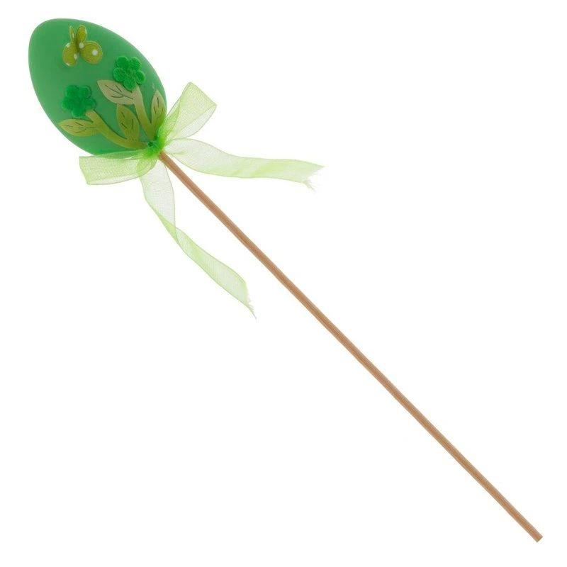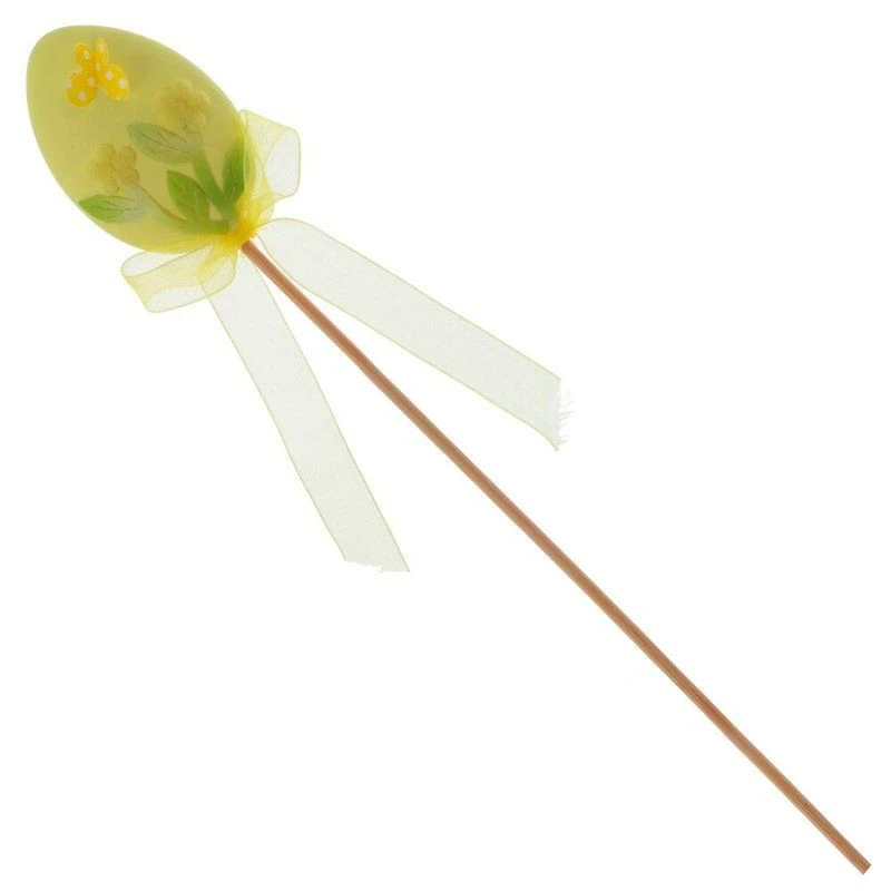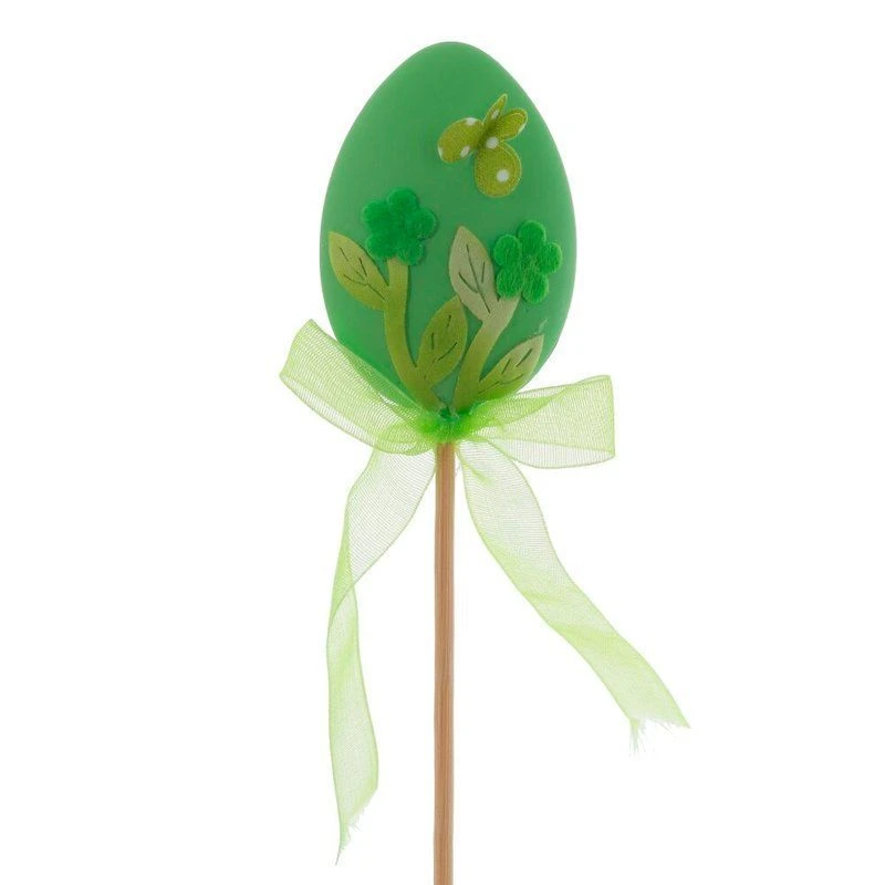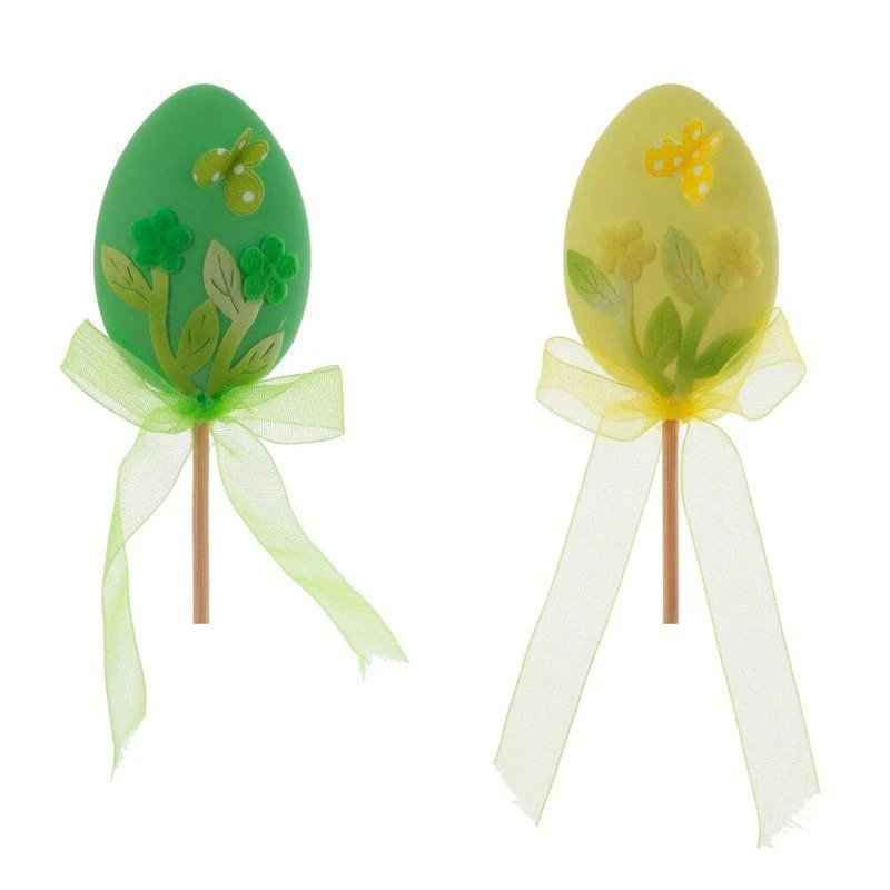 Декоративное изделие Яйцо пасхальное выполнено из текстильных материалов и дерева, идеально подойдет для украшения праздничного стола, цветочных композиций или интерьерного декора. Изящное яйцо зеленого цвета оформлено красивым узором с изображением цветов и бабочки, создавая весеннее настроение. Оно закреплено на деревянной палочке, что удобно для размещения в цветочных горшках, вазах или композициях. Атласный бант придает изделию дополнительную элегантность. Такое украшение сделает атмосферу праздника еще уютнее и радостнее, передавая весь дух светлого Пасхального дня. Представлено в двух вариантах