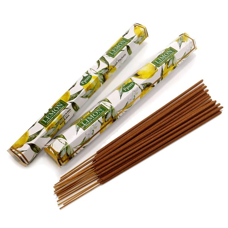 Ароматические палочки, изготовлены на основе бамбуковой лучины с древесным наполнителем, смешанным со смолой Чампы и ароматической эссенцией, содержащей эфирное масло лимона. Получаемый таким образом горьковатый, свежий, сладко-цитрусовый аромат успокаивает при возбуждении и тревоге, способствует концентрации внимания, укрепляет память. Тонизирует нервную систему, идеален для стимулирования умственной работы. Благовония оказывают антисептическое, бактерицидное действие. Аромат лимона пусть и холодный по своему характеру, но сразу же вызывает ассоциации с очарованием южных стран, ярким летним солнышком и с неповторимой свежестью молодой зелени. Аромат лимона способствует развитию интуиции и духовному просветлению. Яркий, горький, но такой бодрящий аромат лимона побуждает к творчеству и активной деятельности.