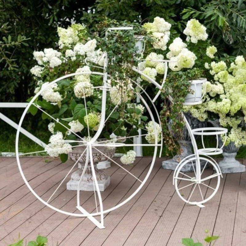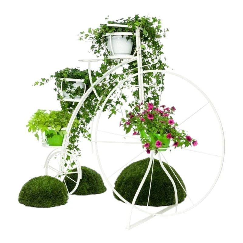 Велосипед для цветов - это изящная кованая конструкция для размещения нескольких горшков с цветами. Ажурная ковка на таких велосипедах внесет элемент буржуазности и винтажа в ваш интерьер или участок. Если в горшках вы посадите вьющиеся цветы, например, розы или клематисы, то они впоследствии разрастутся и придадут кованому велосипеду дополнительный шарм.
