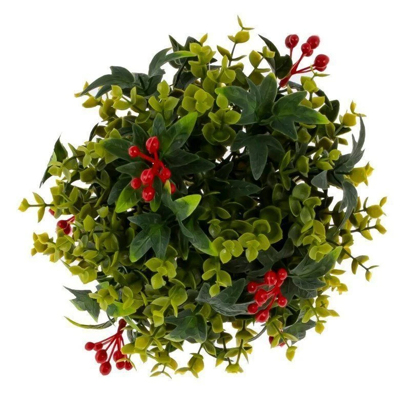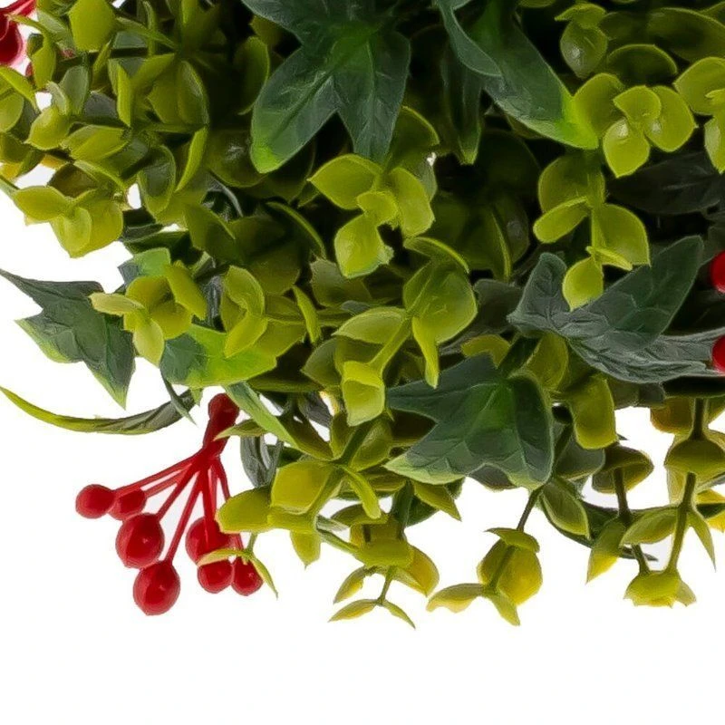 Цветочная композиция "Шар Самшит" выполнена из полимерных материалов, благодаря чему она выглядит максимально натурально и долго сохраняет привлекательный вид. Яркая насыщенная зелень самшита прекрасно имитирует природную листву, а небольшие фиолетовые цветки, аккуратно распределённые среди листвы, придают изделию живой и ухоженный вид. Такой шар станет отличным украшением интерьера, добавит свежести и уюта как жилому пространству, так и офису. Не требует полива и специального ухода, что особенно удобно для занятых людей. Лёгкая, прочная конструкция легко вписывается в различные стили декора.