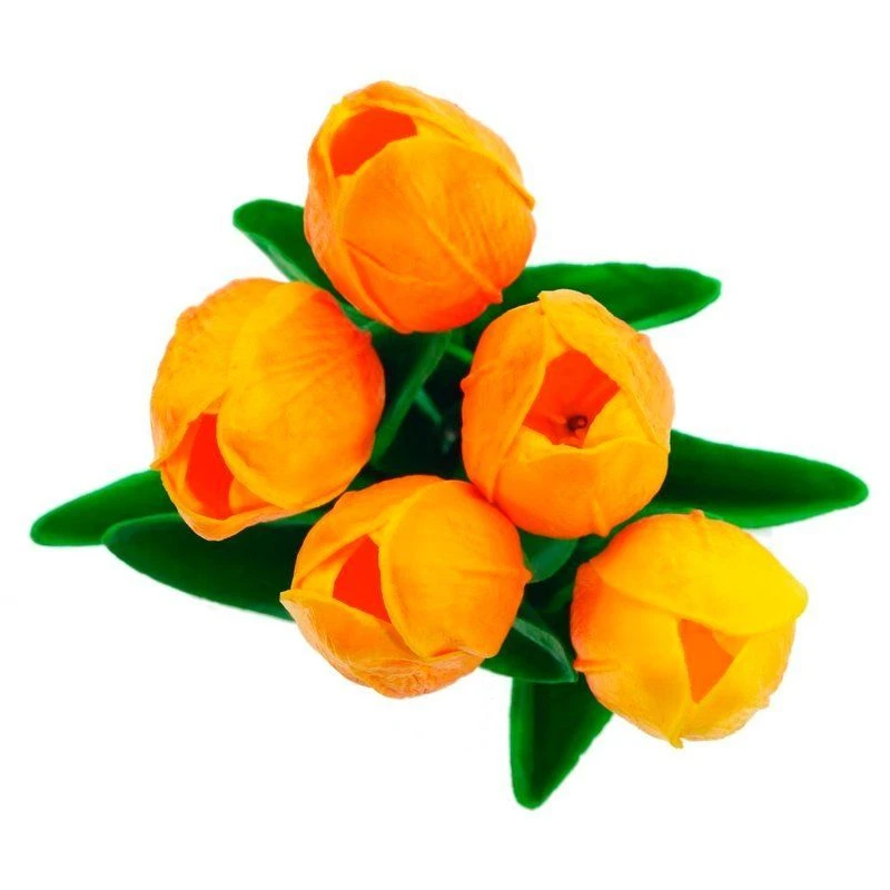 Искусственный букет тюльпанов выполнен из высококачественных полимерных материалов, что делает его практически неотличимым от живых цветов. Нежные лепестки с плавными переходами оттенков передают естественную текстуру и насыщенность окраса, а упругий стебель с реалистичными листьями обеспечивает долговечность и эстетичность композиции. Благодаря технологии Real Touch на ощупь цветы напоминают натуральные, создавая эффект свежесрезанных растений. Такой букет станет прекрасным украшением интерьера, подарком на праздник или элементом декора для фотосессий. Он не требует ухода, сохраняет свой безупречный вид в любое время года и идеально вписывается в любой стиль оформления помещения.