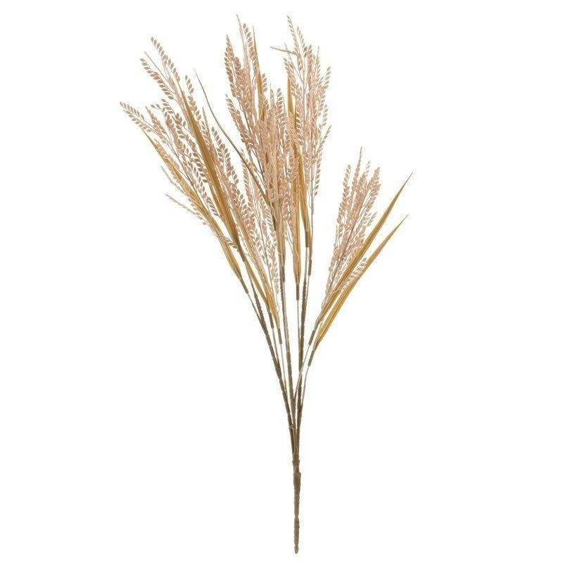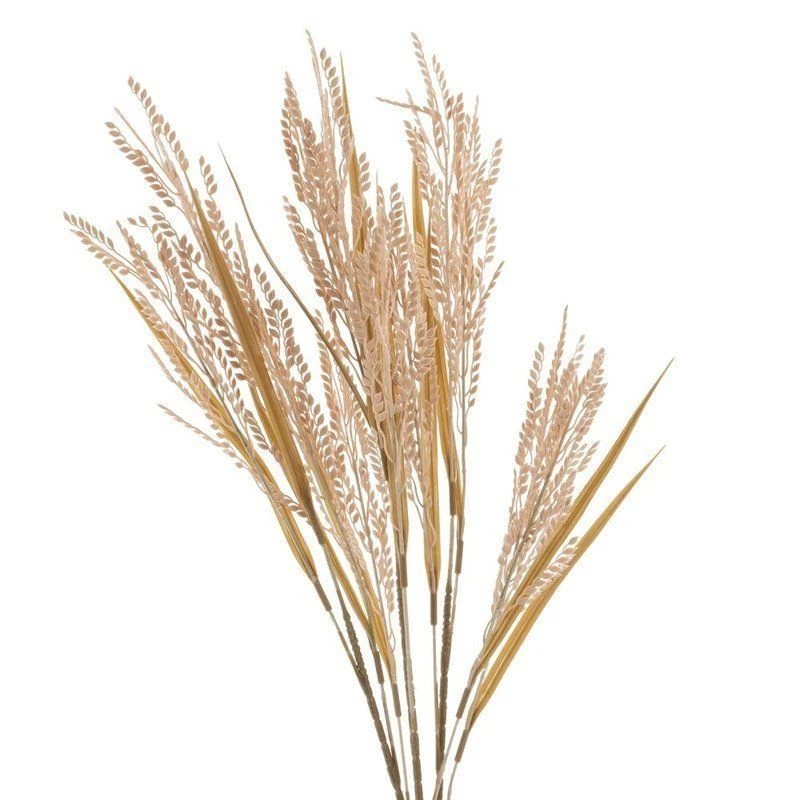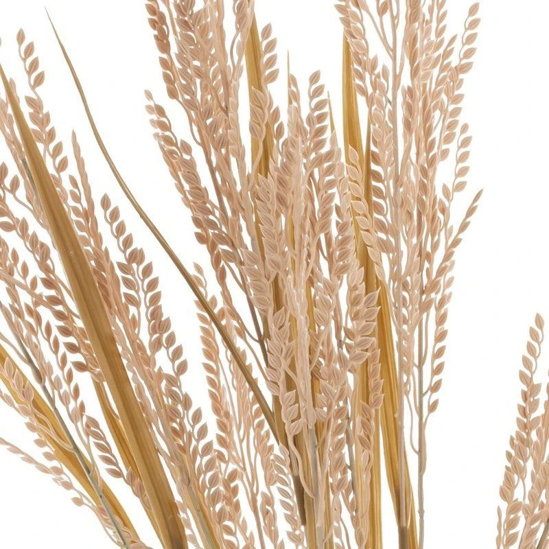 Искусственная ветка, выполненная с высокой степенью реалистичности. Ветка имитирует сухие злаковые растения, что придаёт ей особую натуральность и органичность. Листья и колоски оттенков светло-коричневого и бежевого цвета искусно сочетаются между собой, создавая иллюзию настоящей засушенной травы. Такая декоративная ветка отлично подойдет для украшения интерьера в стиле эко, минимализм или рустик. Она не требует ухода и сохранит привлекательный внешний вид долгие годы, добавляя в помещение уют и природную гармонию. Искусственная ветка может использоваться как отдельный декоративный элемент, так и в составе флористических композиций, букетов или панно.