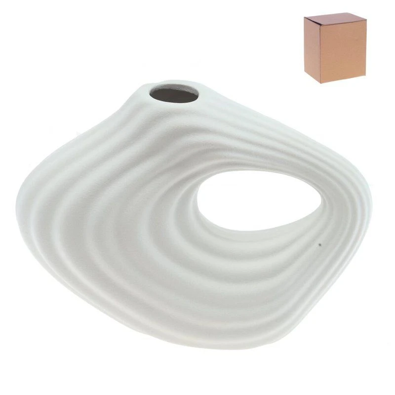 Эта изящная ваза для искусственных цветов объёмом 1350 мл выполнена из фарфора. Её оригинальная форма с плавными линиями и сквозным отверстием делает её стильным элементом декора, который идеально вписывается в современный интерьер. Поверхность вазы имеет рельефную текстуру, что придаёт ей интересный визуальный эффект и делает её гармоничным украшением пространства. Белый цвет позволяет легко сочетать её с различными оттенками мебели и аксессуаров, а также подчёркивает минималистичный и элегантный дизайн. Такая ваза станет отличным решением для оформления гостиной, спальни или офиса, создавая атмосферу уюта и стиля. Диаметр горловины: 3 см.