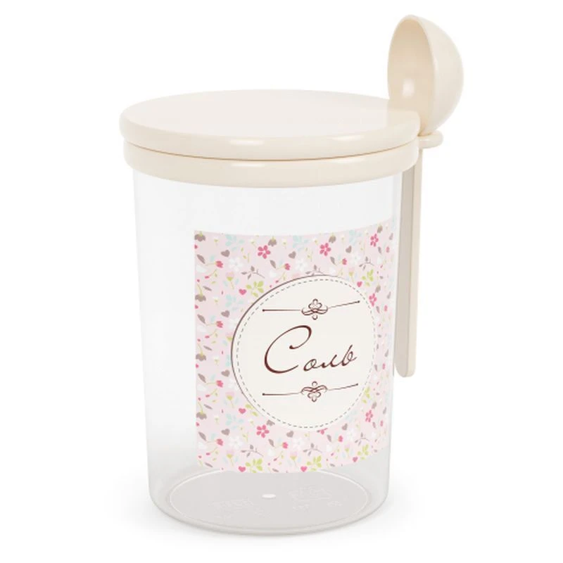 Изделие предназначено для хранения различных сыпучих продуктов: чая, соли, сахара, кофе. Прозрачность ёмкости позволяет видеть содержимое, а тематическая наклейка на ней - соблюдать порядок размещения продуктов на кухне. Крышка плотно закрывает банку и надежно защищает продукты от влаги и мусора. На специальном ободке крепится мерная ложка для удобства использования. Изделие изготовлено из качественного пластика, безопасного для здоровья человека.