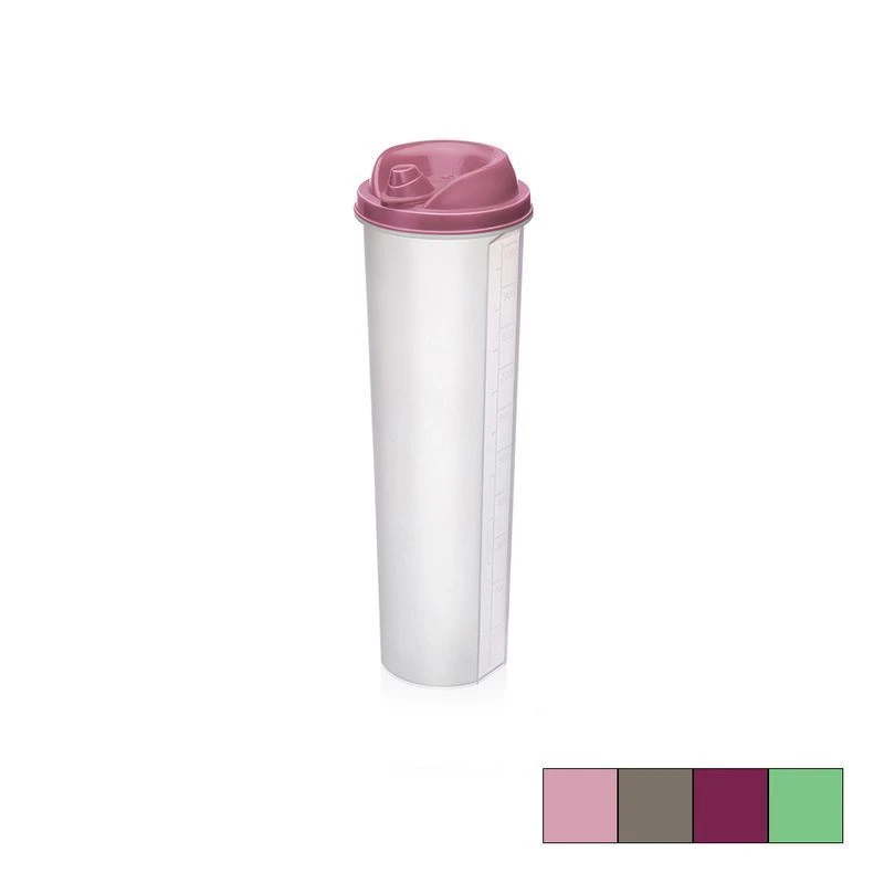 Ёмкость для масла 1 л. –изготовлена из высококачественных материалов. Изделие предназначено для хранения масла. Ёмкость надёжно закрывается крышкой. На крышке находится небольшой носик с колпачком, который предназначен для регулировки дозирования масла. На лицевой стенке по вертикали расположена мерная шкала с цифровыми показателями долей литра. Ёмкость можно хранить в холодильнике. Она легко разбирается, и все её части можно мыть в посудомоечной машине.