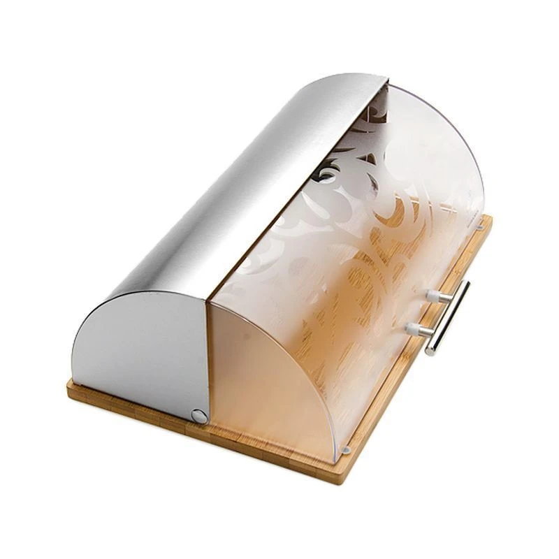 Хлебница MAYER&BOCH позволит надолго сохранить свежесть, мягкость, аромат хлеба и других хлебобулочных изделий. Хлебница выполнена в классическом дизайне из нержавеющей стали, бамбука и полупрозрачного пластика с красивым узором. Сталь не окисляется, не ржавеет и не вступает в реакцию с пищевыми продуктами, а бамбук экологичен и безопасен. Хлебница снабжена удобной крышкой и отверстиями для вентиляции продуктов. Она имеет компактные размеры, поэтому не займет много места. Эксклюзивный дизайн, эстетика и функциональность хлебницы делают ее превосходным аксессуаром на Вашей кухне
