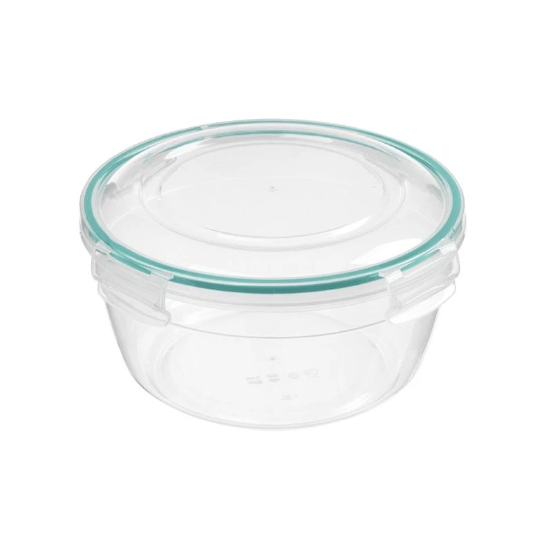 Круглый контейнер для продуктов 1,5 литра легкий, минималистичный и надежный. Плотные замки и силиконовый уплотнитель делают контейнер непротекаемым и надолго сохраняют свежесть продуктов, а также позволяют защитить содержимое контейнера от перемешивания запахов в холодильнике. Контейнеры линейки надёжно устанавливаются дном на крышку, а также вкладываются друг в друга и компактно хранятся один в другом. Герметичный контейнер может использоваться в СВЧ для разогрева блюд с приоткрытой крышкой. Изготавливается из перерабатываемого безопасного пищевого полипропилена.