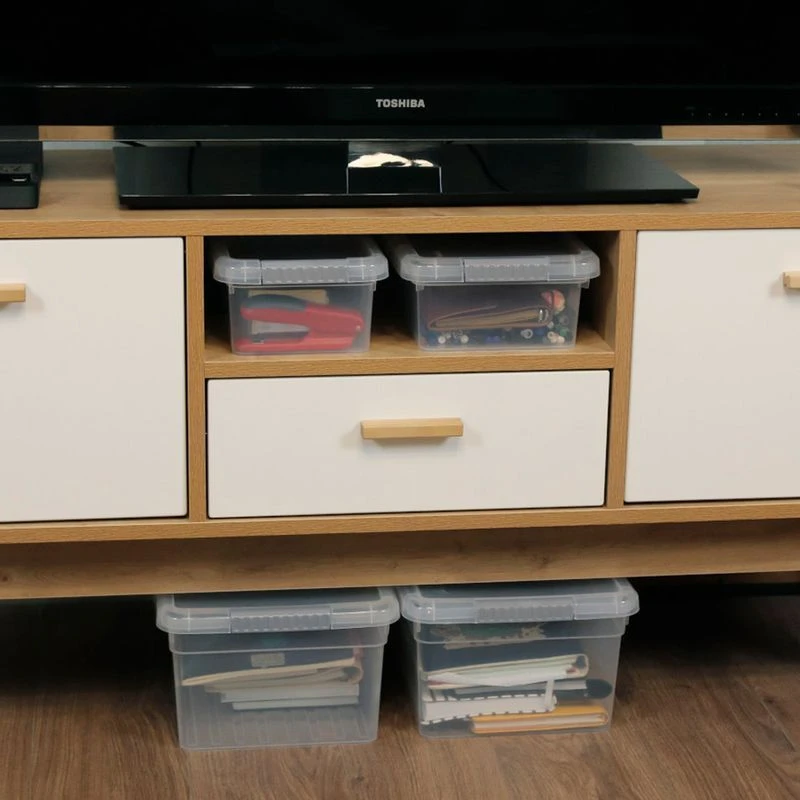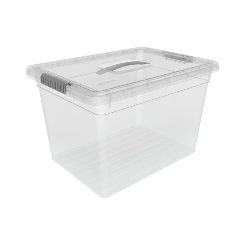 Поможет организовать хранение в гардеробе, в детской, на кухне, в ванной, в прихожей и кладовой. Удобная крышка с защелками плотно и надежно закрывает ящик. В закрытом виде ящик надежно устанавливаются друг на друга, благодаря плоской форме крышки. Компактно складывается, когда не используются. Углубления на дне в виде декоративных полосок помогают доставать мелкие и плоские предметы, хранящиеся внутри. Замки-защелки и ручка выдерживают нагрузку до 10 кг. Ручка для переноски не мешает при установке ящиков друг на друга.
