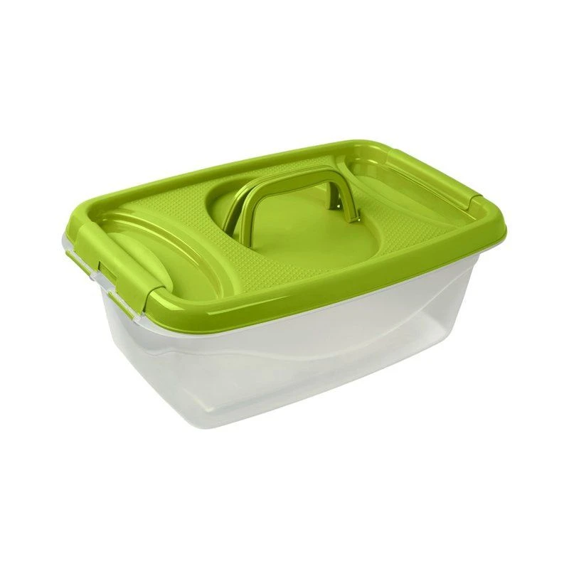 Предназначен для хранения и перевозки продуктов, посуды. Оснащен крышкой с защелками и ручкой для удобства переноски. Кроме того пластиковый контейнер с крышкой отлично подойдет для маринования мяса или овощей, для хранения ягод и фруктов. Контейнер сделан из качественного пищевого пластика, не впитывает запахи, легко моется и гарантирует продолжительное хранение пищевых продуктов.