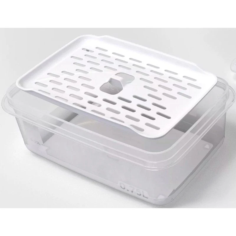 Внутри крышки имеется впаянная бикомпонентная вставка, защищающая контейнер изнутри от образования плесени и других болезнетворных бактерий. Сетка внутри используется в качестве дренажа на дне, обеспечивая воздухообменом продукты и защищая продукты от намокания.