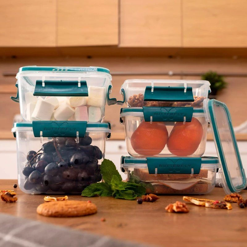 В крышке контейнер "Butterfly" имеет впаянный уплотнитель на основе полипропилена, предотвращающий попадание загрязнений и бактерий под внутреннюю сторону крышки.