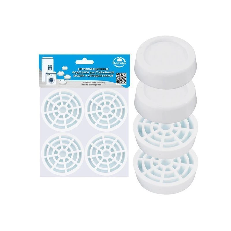 Применение подставок позволяет значительно снизить нагрузку ножек техники на напольное покрытие, керамическую плитку, деревянные полы, а также предотвращает скольжение стиральной машины при работе в режиме отжима. Снижение вибрации при работе техники достигается оптимальной формой подставок и использованием высокопрочного материала.